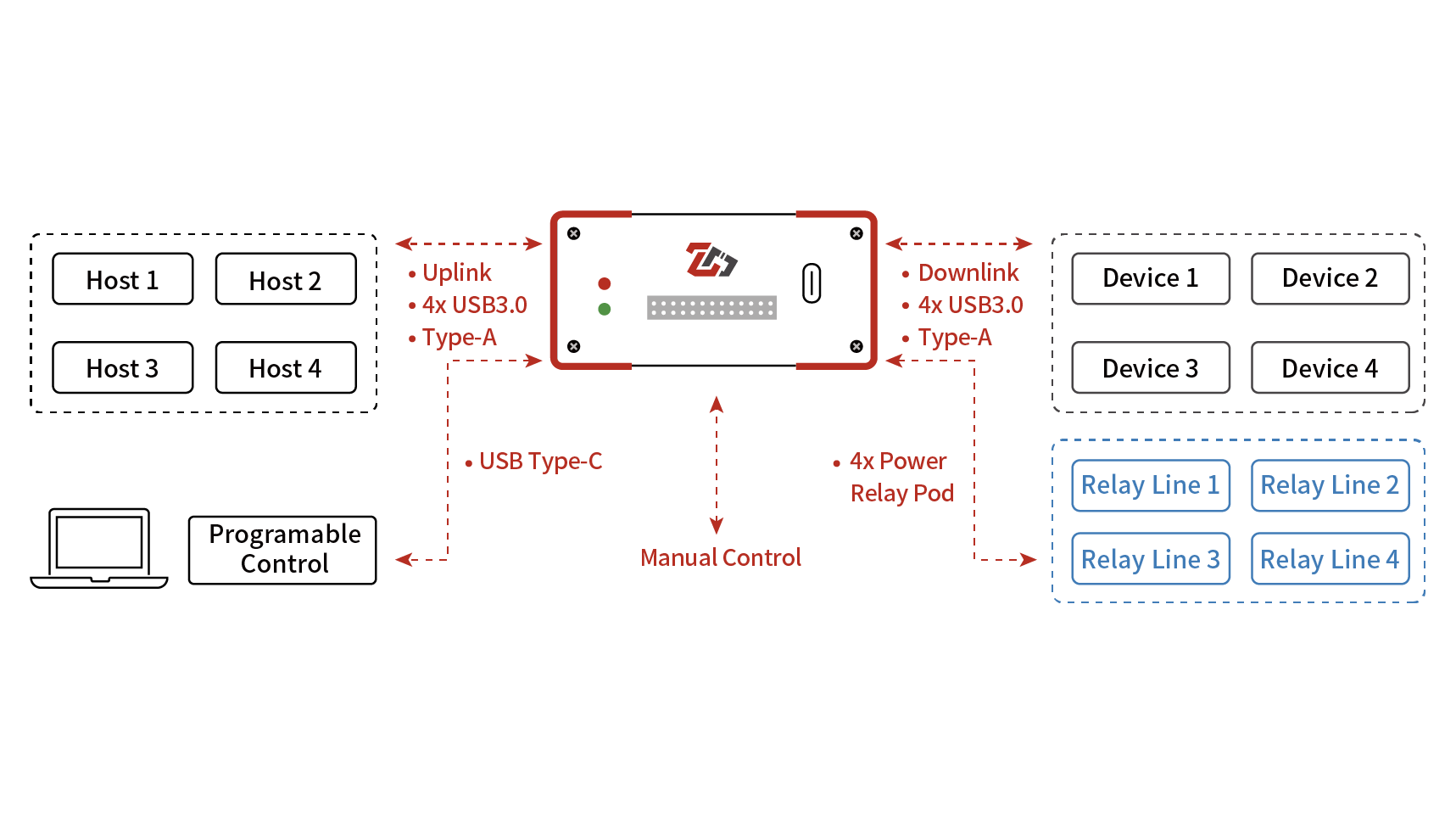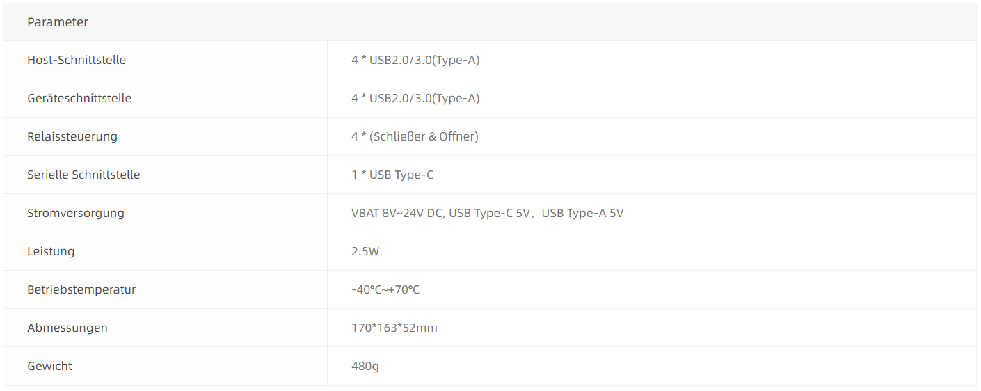 Unterstützung der Echtzeit-Überwachung des hostseitigen USB, des geräteseitigen USB, der USB-Stromversorgung und des Relaisschalterstatus