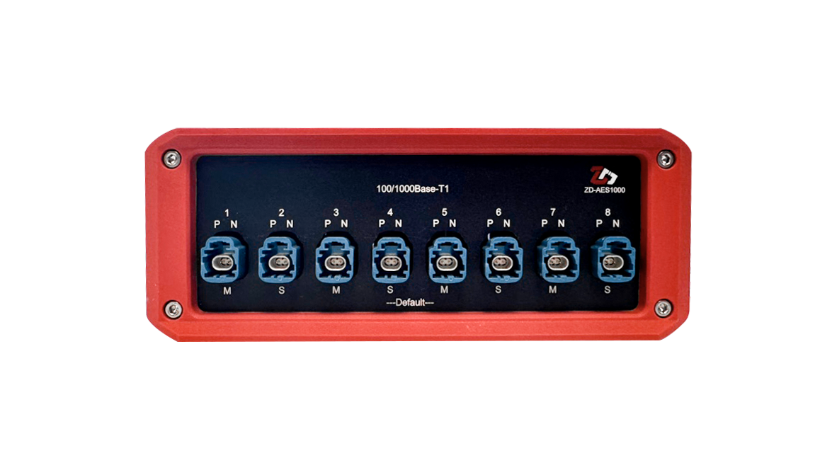 Der ZD AES1000 ist ein erweiterter Ethernet-Switch, der die Erweiterung von 8 * 100/1000Base-T1 Ports unterstützt. Er ist ein Entwicklungswerkzeug für das Testen und Analysieren von Automotive Ethernet mit breiten Anwendungsszenarien. Es ermöglicht Benutzern, mehrere Geräte in Fahrzeugnetzwerken physisch zu trennen und sequenziell zu durchlaufen, um virtuelle Punkt-zu-Punkt-Verbindungen zu erstellen. Dies löst das Problem inkompatibler physikalischer Schnittstellen zwischen verschiedenen Geräten im Automotive Ethernet, ermöglicht eine High-Speed-Datenübertragung und unterstützt die gPTP-Zeitsynchronisation. Der ZD AES1000 kann für das Debugging von Automotive-Ethernet-Chips, als physikalischer Simulationsknoten mit Fahrzeugnetzwerkkanälen in Verbindung mit Simulationstestsoftware und für das Debugging von Automotive-Ethernet-Sensoren verwendet werden.