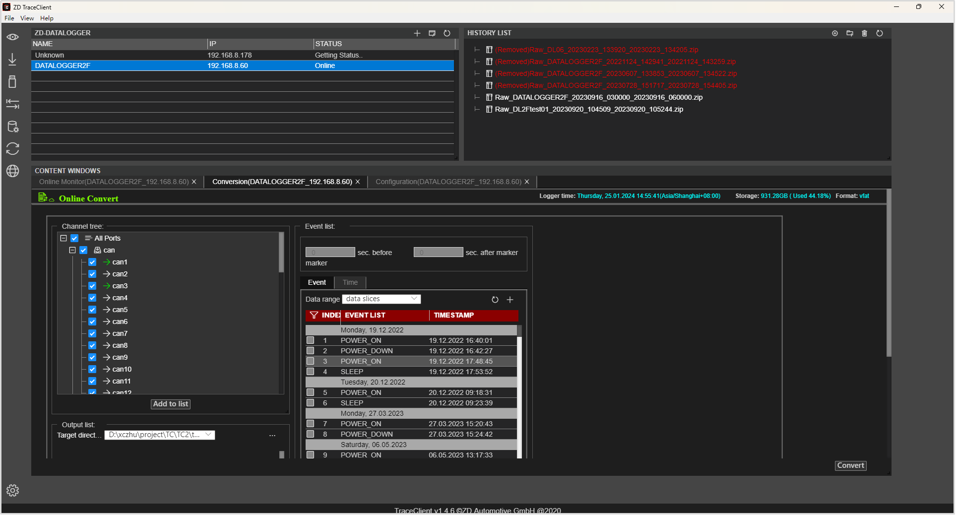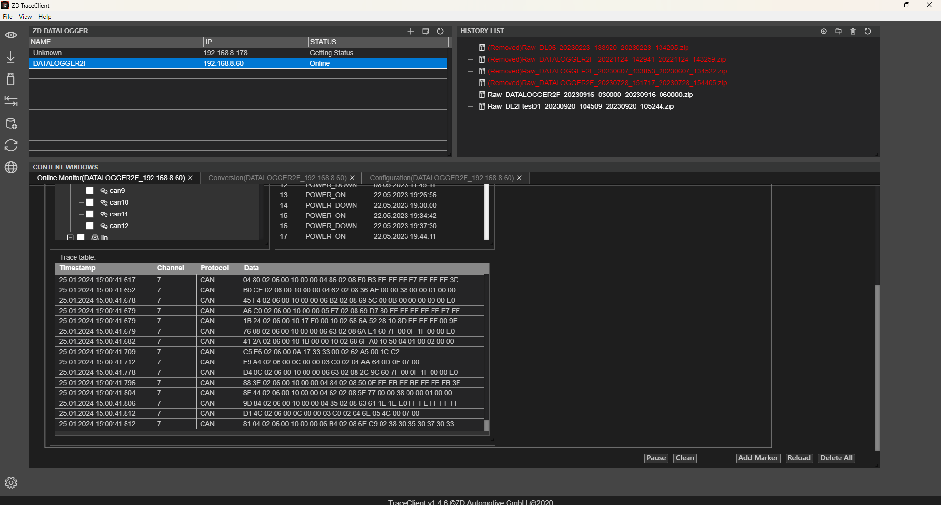 - Daten, die mit dem ZD Datalogger2 gesammelt wurden, können auf den lokalen Computer in Form von ZIP-Paketen oder eines Ordners heruntergeladen werden