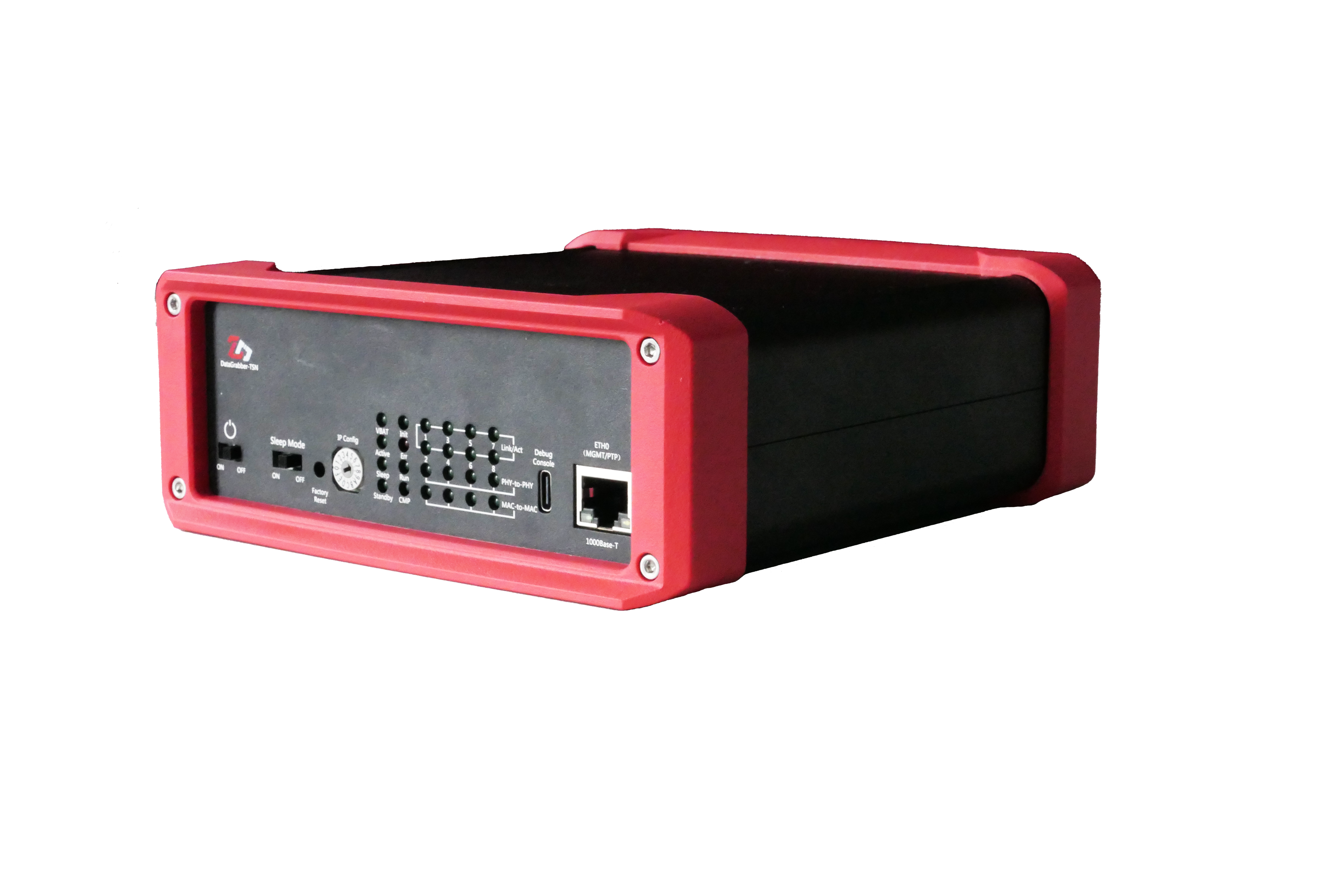 Ausgestattet mit einer hardwarebasierten Zeitstempel-Engine mit einer Auflösung von 100 Nanosekunden für präzise Synchronisation und Latenzanalyse in TSN-/AVB-Umgebungen.